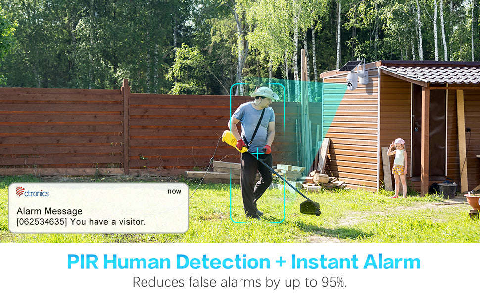 Using high sensitivity PIR sensor and radar sensor, ctronics surveillance wifi camera 2K can wake up quickly within 0.2 seconds when motion is detected. It can calculate human motion and send alert messages to your phone. As a result, it reduces false alarms caused by factors such as rain and insects by 95%. The alarm sensitivity can also be adjusted to different levels, the higher the value, the easier it is to trigger the alarm.