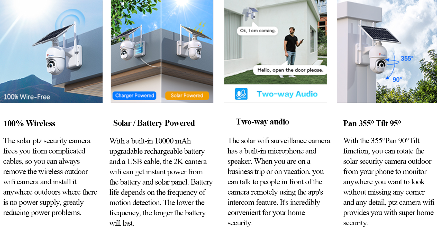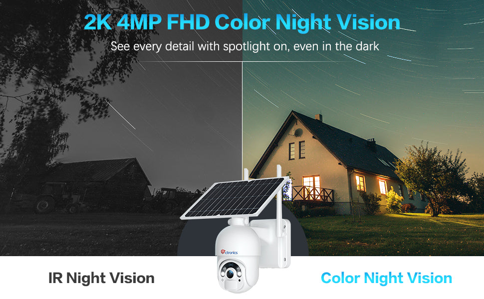 With 2K 4MP high resolution, the ctronics solar camera gives you super clear videos and photos.
